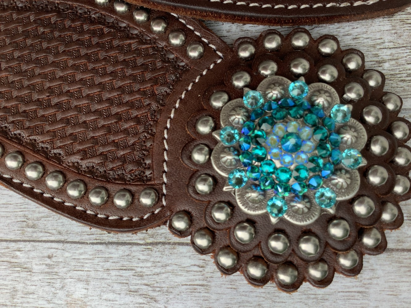Dovewing Sporenriemchen florales Tooling, Dots & Square Conchos