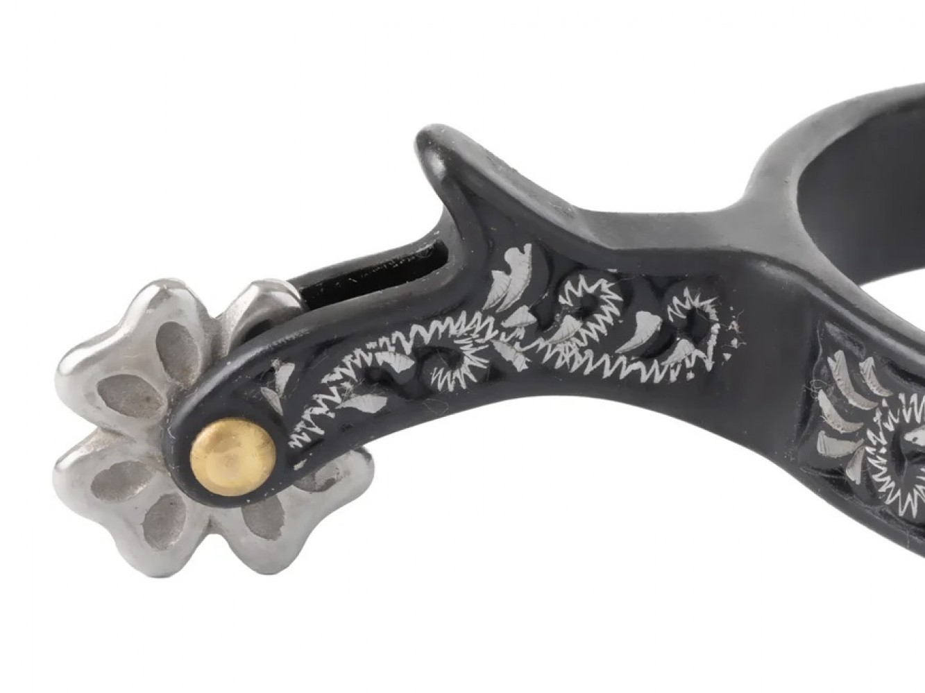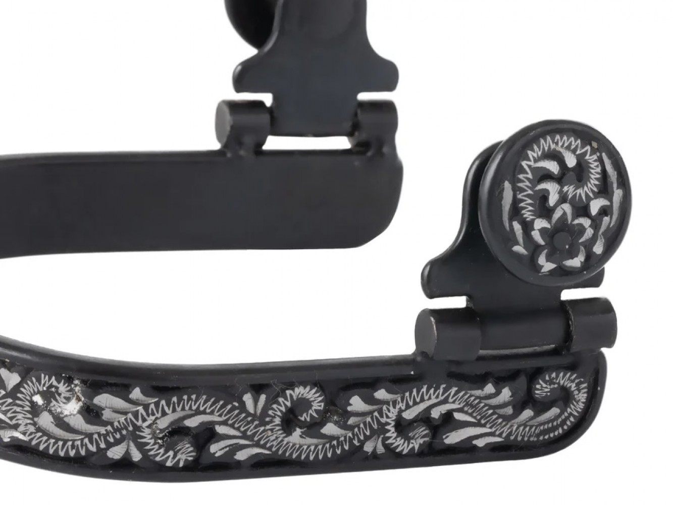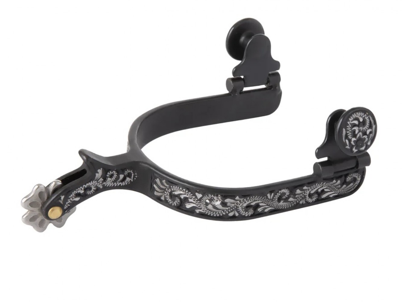 Ladies Black Spurs Floral Engravement